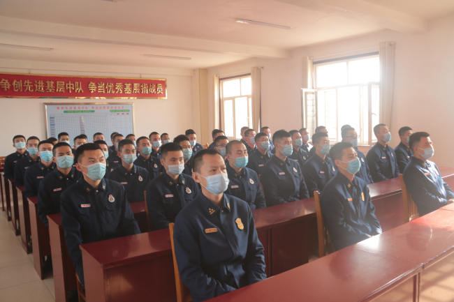 会上,刘杰教导员宣读了大队冬季大练兵活动实施方案,明确了活动时间、训练内容、方法步骤和措施要求。并就开展好冬季大练兵活动提出了具体要求:一是提高思想认识。坚决贯彻落实上级通知要求,抬高政治站位,持续激发指战员政治荣誉感、责任感和使命感,切实把冬季大练兵作为队伍提质强能的有力抓手。二是灵活组训方法。严格按照“急用先训、管用多训、基础常训”的思路,认真研究规律、明确责任分工、科学合理统筹,充分发挥干部骨干带头作用,利用达标转训、评比竞赛等方式,进一步提升训练质效。三是确保训练安全。冬季练兵活动持续时间长,气候条件相对较差,要坚持全员发动,全员参训,更要健全训练安全组织,分析安全形势,评估训练风险,采取有效措施确保安全底数。会议全程,每名消防救援人员端坐静听,认真做好笔记,并在会后以中队为单位再次动员部署,使冬季大练兵活动的重要意义及目的再次入心、入脑。
