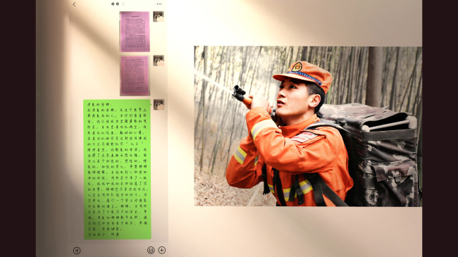 阿勒泰大队二中队以此为契机组织“撰写家书,心事微传”活动,以电子书信的形式将《新年慰问信》向远方的亲人传递应急管理系统党委的美好祝愿,也向父母报告一年来的成长收获,心中无限感慨,笔下力重千钧。一撇一捺构成的汉字里,透露着对父母的思念,集于微信之上,用一封封家书,遥寄给远方心中牵挂的亲人,传递着对家人的思念。