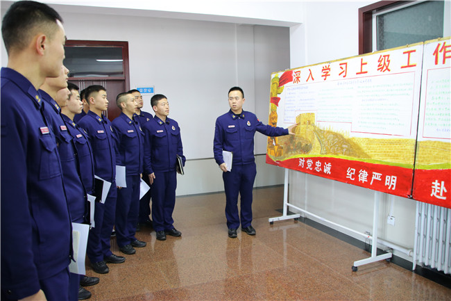 为确保人员学深学透,入脑入心,真正领悟会议精神实质,中队深度融合宣传媒介,利用橱窗展板、微信公众号、黑板报、广播等载体,以人员喜闻乐见的方式,全方位、多角度宣传会议精神,营造学习贯彻的浓厚氛围,不断扩大会议精神的影响面,在潜移默化中培育人员的学习兴趣,激发学习动力。“通过深入学习领悟上级党委扩大会议精神,进一步统一了思想,理清下步工作思路,在下步工作中我一定把学习会议精神的热情转化为立足本职岗位建功立业的内在动力,以更强的责任担当、更实的工作作风,高标准、高质量完成年度工作任务”三级消防士葛文学在学习中说道。