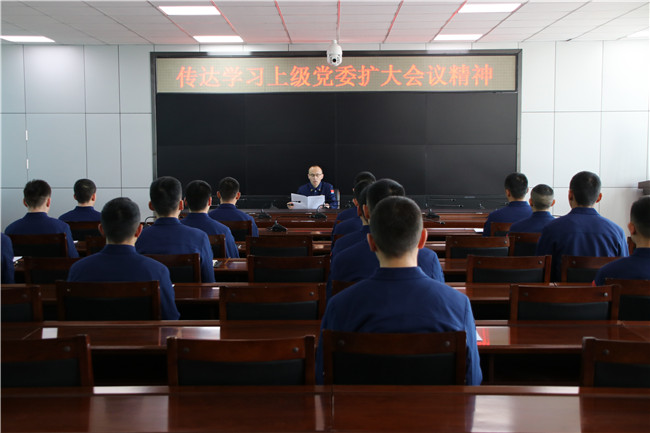 中队坚持把学习贯彻三级党委扩大会议精神作为当前一项重要政治任务,在原原本本学习会议相关文件的基础上,通过召开支部委员会、指战员大会、队务会和班务会等形式的基础上,组织人员对会议精神要点进行反复学习,让人员准确把握新年度的工作方向与党和国家的新方针、新战略。严格落实组织生活制度,有效利用“三会一课”、民主评议、谈心谈话等时机,将三级党委扩大会议精神与思想政治教育融合渗透,切实把会议精神灌溉到全体消防救援人员的思想中去,同时结合当前队伍建设实际,利用启发式、提问式、解答式等方法,引导人员不断增强政治判断力、政治领悟力、政治执行力,提高政治敏锐性,在学习上级党委扩大会议精神上更有灵气,在行动贯彻落实上更加坚定自觉。