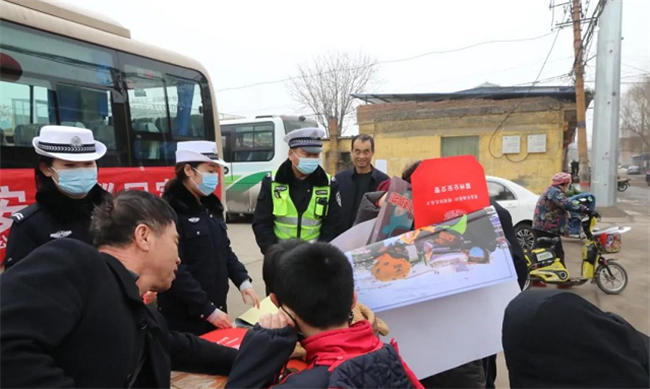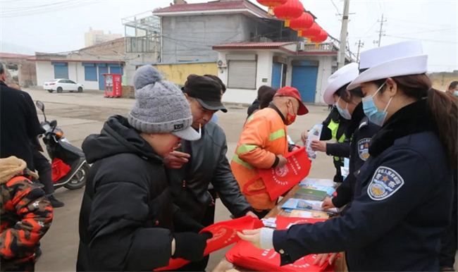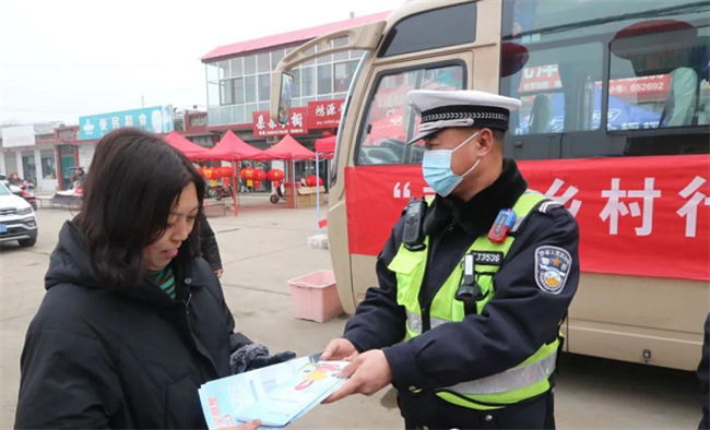 活动中,民警紧紧围绕“一盔一带”、“拒绝酒驾”“三轮车禁止载人”等主题,针对农村面包车、三轮电动车、两轮电动车、摩托车、低速载货汽车驾驶人等重点人群,充分利用乡村文化广场的有利条件,采取“粘贴宣传海报、拉挂宣传条幅、播放宣传大喇叭、发放宣传资料和宣传品以及讲解交通违法典型案例”等多种宣传手段,向广大农民朋友广泛宣传“一盔一带”的重要性和违规乘坐农用车和三轮车、无牌无证车辆上路行驶、酒后驾驶等交通违法行为的危害性,引导大家自觉遵守交通法规,抵制危险驾驶和不文明驾驶行为,安全文明出行。