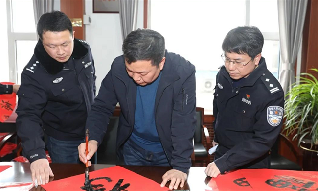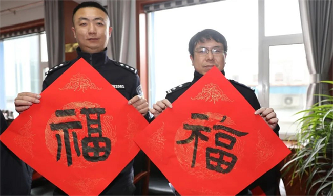 开展“迎春送福、墨香警营”送春联活动