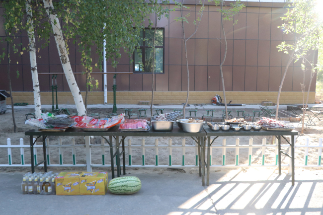 庆祝活动以烧烤晚会的形式进行,下午训练刚结束,队员们就开始紧锣密鼓的准备工作,大家纷纷拿出各自“绝活”,洗菜、切肉、穿串、生火、……转眼就将场地布置完毕。