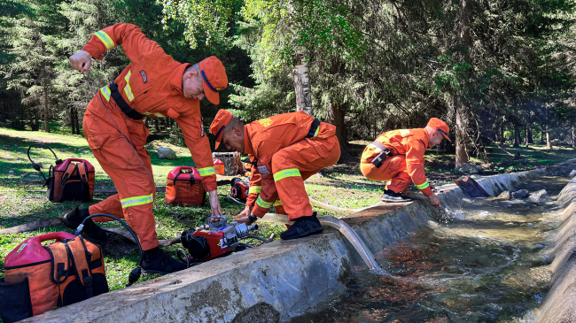 本网讯:(王恒辉)“山坡处有一火点,一组迅速架设水泵,采取并串联结合方式进行处置”。随着指挥员一声令下,指战员迅即按照各自分工就近取水、启动水泵、铺设管带……所有动作一气呵成,这是新疆阿勒泰森林消防支队白哈巴驻防分队正在开展山地水泵架设与撤收实战训练的场景。