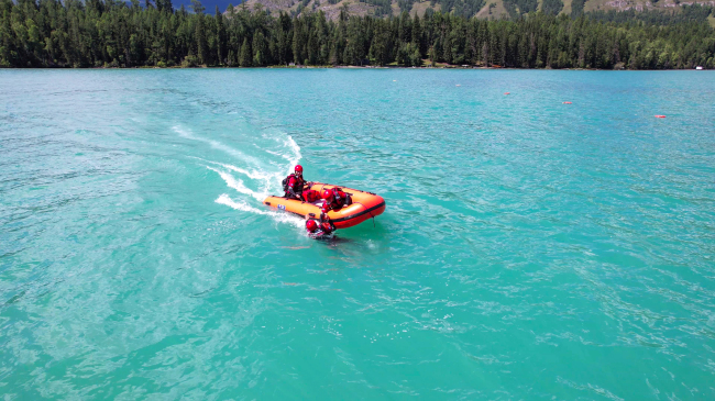“751、751,前方静水环境中,发现1名溺水者,请火速前往救援。”分队在训练中坚持突出实战化原则,注重在练精技能、练强本领、练实效果上下功夫,模拟不同类型水域设置不同救援背景积极开展救援演练。静水救援演练中,在水深不超过2m的静水环境中设置1名溺水假人,组织参训人员将溺水者拖带至终点实施心肺复苏,全面检验游泳救援方法和救护技能。翻船自救演练中,模拟救援小组突遇险情不慎翻船,演练救援队员落水将船翻转扶正,排除发动机故障后操艇返回靠岸,全面考验参训人员能否合理运用救援技巧、排除自身险情的过硬能力。通过演练,引导参训骨干进一步掌握救援技能、检验训练成果、查找训练不足,全面固化了安全高效的救援理念和科学施救的作战模式,有效缩短了训练与实战距离。