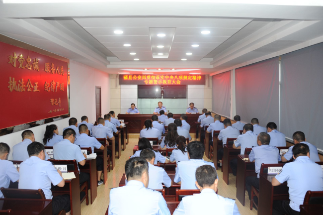 会议通报了近期发生的违反中央八项规定精神的典型案例;传达学习了8月3日省委、县委专题警示教育精神会议精神;集中学习了《公安部关于严禁违规宴请饮酒的规定》、《山西省政法干警“十个严禁”》等内容。要求各科室所队要深化认识、强化责任、细化措施,纵深推进专题警示教育,进一步深化全局纪律作风建设。