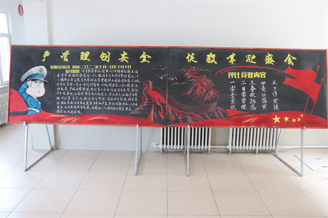 此次板报制作过程中,大队精心策划,以习近平总书记授旗训词精神为指导、以“严管理、创安全、促改革、迎盛会”为主题,为提高板报质量,成立板报小组,指定专人负责。板报中主要以百日安全建设目标任务和方法步骤相关内容为主,用简单直接的方式将百日安全建设思想及安全责任灌输给队站全体消防救援人员,从而提高全体人员警觉性,确保了百日安全建设工作入脑、入心,保证了队伍内部安全稳定。