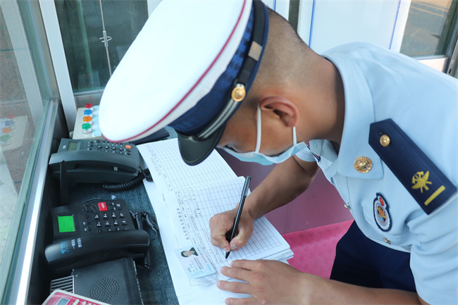 二是严抓营区进出人员登记汇报。大队就如何落实车辆出入登记管理。外来人员登记接待做出了明确规定,要求消防员外出时要做好请示汇报和相关登记,必须持有请假条再放行,否则一律不能出入营门。外来人员因工作需要,切实需要进入营区的,须出示行程码、健康码、核酸检测信息,并进行体温测量、消毒和信息登记工作,切实增强执勤岗哨的纪律性和敏锐性。