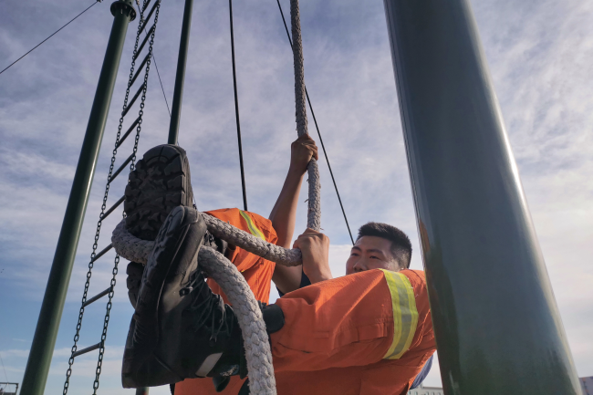 体能训练科目中,爬(杆)绳、固定滚等科目因力量要求高、协调性要求强,参训人员基础相对较弱。对此,培训队及时调整训练计划,重点加强应用体能中难点科目训练,通过教方法、谈经验、做练习等形式组训施教,采取集中强化、持续循环等训练方法,帮助参训人员掌握动作要领,提高训练成绩。