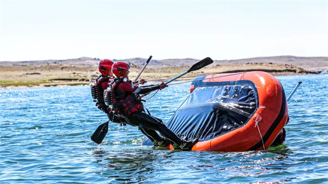 本网讯:(丹增晋美)进入汛期以来,全国多地降雨量增多,防汛形势日趋严峻,为全面做好驻地水域灾害事故抢险救援准备工作,强化队伍水域救援能力。近日,新疆森林消防总队阿勒泰支队阿勒泰大队二中队在阿勒泰市塘巴湖旅游景区,模拟实战开展水域救援训练,提升队伍水域救援技能,为做好防汛抢险救援工作做足全面准备。