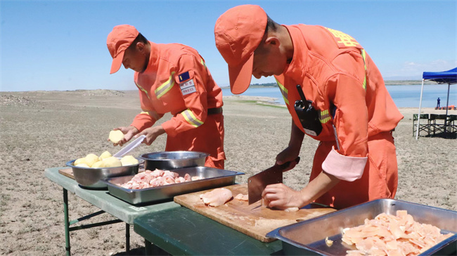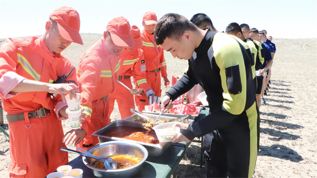 “兵马未动、粮草先行”。野外训练期间,队伍训练强度高、难度大,队员能量消耗快、饭量急剧增加,为保证队员吃饱、吃好,大队定期组织召开民主生活会,广泛收集队员对后勤方面的意见建议,针对队员南北方差异,科学制定食谱,合理调配膳食,切实为队员提供合口味、高标准的伙食保障。针对高温天气为队员提供绿豆汤、西瓜等消暑解渴,同时也在训练场地设置热射病急救区,配备防暑药品,并指定卫生人员全程伴随保障,确保遇有情况及时科学处置。