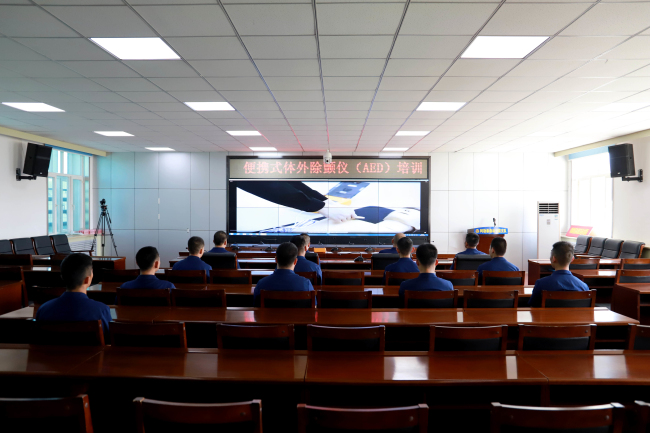 “也就是说,如果在公共场所发生心脏骤停危及生命事件时,在宝贵的“黄金四分钟”内正确使用AED设备并配合人工心肺复苏术使用,可提高50%以上挽救生命的几率。能极大地提升院前急救质量,达到挽救生命、减轻伤害的目的……”卫生员拓新满讲到。