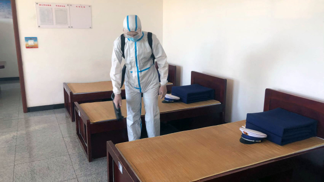 封闭式管理后,大队结合实际细化防疫预案,明确防控管理制度和责任人,安排卫生员每日对食堂、宿舍、楼道、垃圾桶等重点场所进行消毒消杀,提前储备消毒液、口罩、防护服、体温计等防疫物资,合理安排休假归队人员隔离场所。持续加强营门管控力度,严把营门“入口关”,严格管控营区车辆、人员出入,禁止外来人员进入营区,并要求减少网购,禁止外卖,对已收到的快递进行消毒、登记、检查,在确认符合防疫要求的情况下方可签收,确保实现疫情“零输入”。严把食物配送关,加大对配送食材的检查力度,每次安排厨房值班员、卫生员和司务长同时验收检查,杜绝不新鲜及变质的原材料流入队伍,加强炊事制作管理,做到先洗后切,生熟食分刀板切配加工,冷藏食品密闭式存放,防止副食品在制作存放过程中污染变质,坚决落实食物留验和分餐制,坚持餐后对餐具进行消毒,防止病菌滋生。