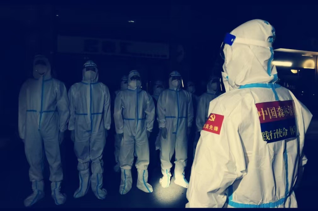 本网讯:(刘海 李俊勇)面对伊犁州突发疫情的严峻考验,伊犁州森林消防支队各级党组织、广大党员积极响应自治州党委政府的号召,闻“疫”而动,“火焰蓝”披上“白战袍”,迅速投入到疫情防控主战场,同心同向、众志成城,以实际行动践行初心使命,让党旗在抗疫一线高高飘扬。