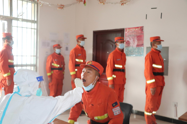 二是严格防控监管。驻防点按照封控管理要求严格执行封闭式管理,坚持戴口罩、测体温、勤通风、勤洗手,指定专人每日对驻防点所有场所进行消毒。主动对接驻地疾控部门,提前报送采集人员信息,开展全员核酸检测,实现“应检尽检、不漏一人”的工作目标。对休假、培训等在外人员健康码和行程轨迹进行实时监测,要求在外人员要严格落实防疫制度,每日按规定汇报自身健康状况,切实确保队伍内部零感染。