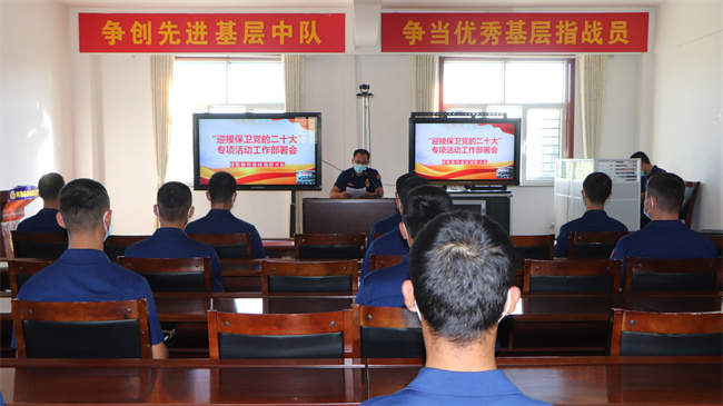 强化政治引领,筑牢思想根基。大队结合上级《迎接保卫党的二十大专项活动实施方案》,研究审定大队实施方案后及时召开指战员大会进行动员部署,统一了思想,明确了标准,激发了全体队员昂扬的斗志。而后,大队持续开展学习教育,认真贯彻落实各级教育学习计划安排;组织开展主题演讲比赛、读书分享会等文化活动,不断强化政治引领,着力营造浓厚的政治氛围;