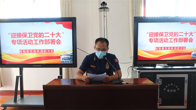 本网讯:(刘翔)为深入贯彻落实上级关于“迎接保卫党的二十大”专项活动的重要指示精神,促进基层经常性基础性工作有效落实。连日来,新疆总队阿勒泰支队阿勒泰大队按照大队专项活动推进计划表,围绕五项主要内容,紧贴大队实际,有序推进“迎接保卫党的二十大”专项活动。