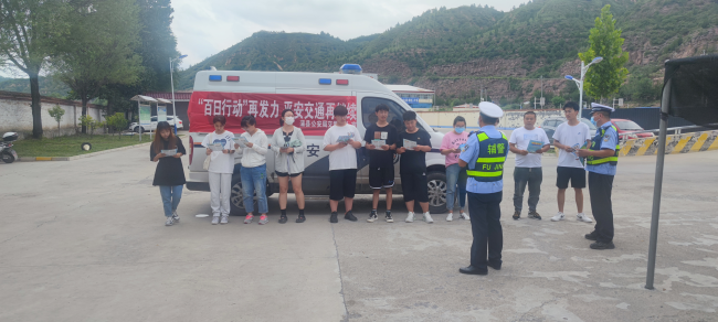 本网讯:(张鑫)为切实做好我县道路交通安全管理工作,进一步提高学生出行遵纪守法的意识,养成良好文明的交通习惯,蒲县交警大队组织民警深入辖区华阳驾校积极开展夏季整治百日行动交通安全宣传活动。