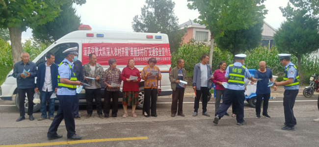 本网讯:(张鑫)自夏季整治“百日行动”开展以来,蒲县交警大队严格按照上级部署要求,以最大力度、最实举措、最严标准,深度治理道路交通安全隐患,织密织牢道路交通安全防线,坚决防范道路交通事故发生,全力为党的二十大胜利召开创造安全稳定的道路交通环境。近日,蒲县交警大队组织民警走进农村开展夏季整治百日行动系列宣传活动。