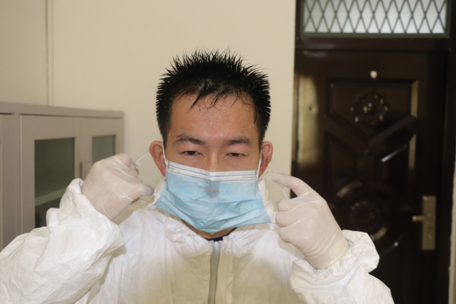 归队之后他立马主动请缨,挺身而出,积极发挥自身卫生专业特长,担起营区卫生消毒、隔离人员体温检测及生活保障等任务,战斗在疫情防疫第一线。并及时与疫控中心、卫健委取得联系,协调购买口罩、消毒液、抗病毒药品等物资。每日身穿防护服,背起重达30公斤的喷雾器进行地毯式消毒、测量体温各3次。倡导广大指战员讲卫生、勤洗手、戴口罩防护好自己就是为防疫做贡献。