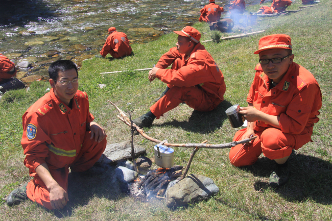 2011年9月13日,新疆阿勒泰地区禾木苏木河林区发生重大森林火灾,经飞机实地勘测,火势较大,火场林木主要以针、阔叶灌木混交林为主,火场区域细小可燃物较多,加上火场坡度65度,有的地方达到80多度,直升机无法停靠,马匹也无法行走,所有人员和物资只有靠人力往上背,但是火情就是命令,容不得一分一秒的耽误,郭昱成和战友立马背上装备向火场奔赴……经过持续近两周的奋战,火势得终于到有效控制。