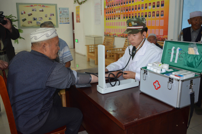 郭昱成经常帮助驻地困难少数民族同胞,多次深入福利院为孤寡老人免费看病送药关心身心健康,一个一个 “望、闻、问、切”,为他们解答体检报告,给他们现场测量血压,拉家常听病史讲治疗,既亲切又朴实,让每一位来咨询的老人都明白了自己的身体状况,都满意而归。有的老人平时不爱打理个人卫生,头发深了也不剪,胡子长了也不知道刮,时间长了理发师都不愿意给他们理发。经常都是郭昱成烧上热水亲自给他们洗头、理发、刮胡须。时间长了,只要郭昱成一来到福利院,大爷大娘就热情的拉住他的手,跟他拉家常。