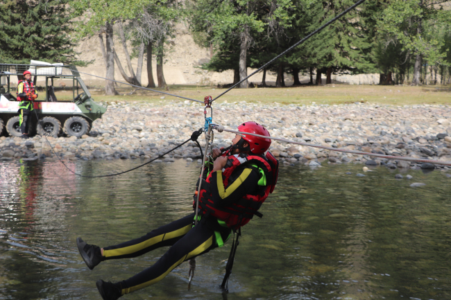 驻防分队依托驻地现有条件采取模拟环境、实操训练、逐人操作等方式认真组织实施,救援人员严格按照训练要求分别对锚点制作、横渡系统、模拟营救、倍力系统操作使用进行演练。坚持在“思”上谋突破,杜绝“唱独角戏”“照本宣科”等单纯的复制模仿,采取“互动交流、分组练习、集中讲评”等教学手段。救援人员目光紧盯每个关键环节、手脚专注每个动作细节,不让任何一个环节出问题,不使任何一个动作打折扣。