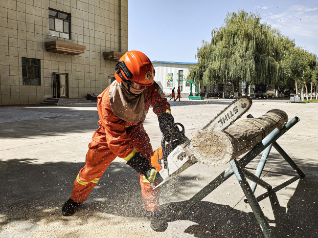 本网讯:(魏富满 杨长红)随着风力灭火机轰鸣声响起,最后三块砖头应声倒地,预备消防士杨志武,一个箭步冲出,以百米冲刺的速度,跑向油锯操作使用科目, 这是巩留县森林消防大队备战总队比武训练场上的一幕。