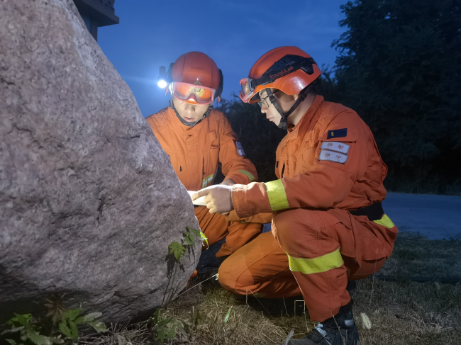 野外按图行进作为实战化训练课目中重要的一项内容,是指战员成为“铁脚板、山里通、活地图”的基础技能。训练前,支队战训科坚持紧贴实战、确保安全、公平公正的原则,提前设置行进路线和坐标点,并对训练人员随身携带物品进行详细检查。训练中,全体参训指战员按照规定步聚要求,依据提供的目标点坐标,利用指北针,地形及相关作业工具,各小组队员明确分工、合理规划路线,充分展现了过硬的专业素质,在大家的团结帮助下,各小组陆续完成夜间按图行进训练,在单程不少于5公里的路线上,通过现地对照徒步寻找5个目标点,而后冲到终点。