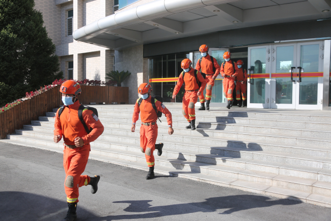 地震灾情发生往往具有突发性和不确定性。此次演练,支队聚焦实战,采取不打招呼、随机拉动的形式,紧贴实战“突发性”。接到命令后,支队全体消防救援人员快速集结,出动地震救援车辆20台、消防救援人员50人,携带生命探测仪、破拆起重、顶撑支护、警戒洗消等装备器材300余件(套),奔赴模拟地震现场实施救援。
