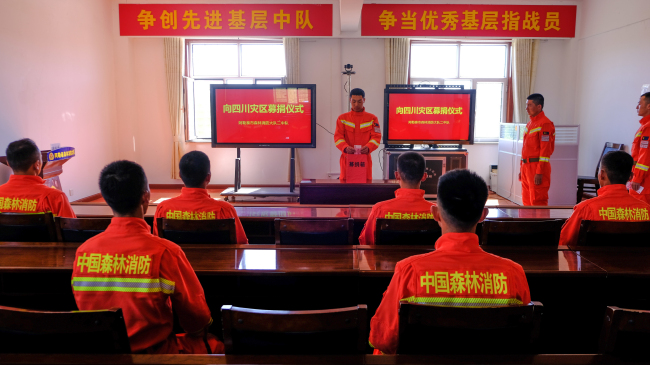 中队指导员陈伯温在捐款时说:一方有难,八方支援,在党中央的坚强领导和科学决策下,在全体救援力量的支持下,在社会各界的倾力相助下,相信四川人民一定能够战胜困难,重建家园!