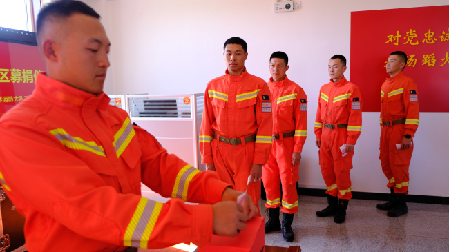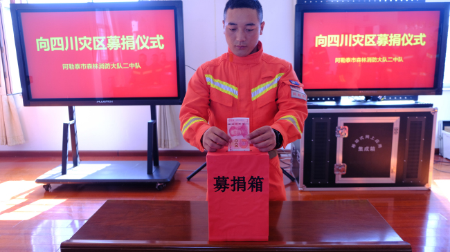 预备消防士阿依保力表示:身为消防员,救灾就是我们的责任,即使现在上不了一线,我也要通过捐款来支持灾区的人名。最后,请党放心,救灾有我;请全国人民放心,我们时刻准备着!