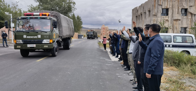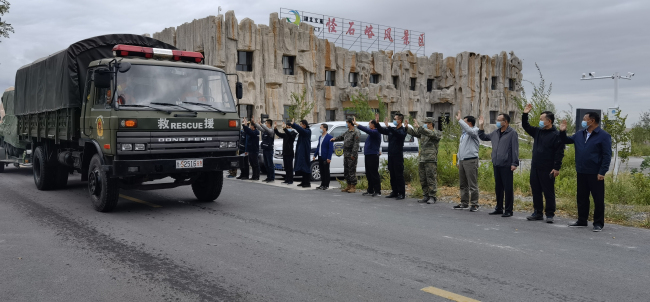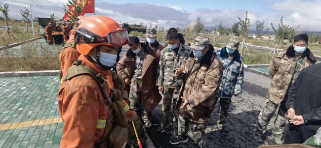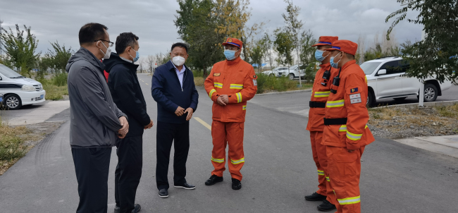 慰问结束后,项副总队长与自治区应急厅努尔居玛·加海副厅长及自治区指导组联合组织了周边区域防火检查。