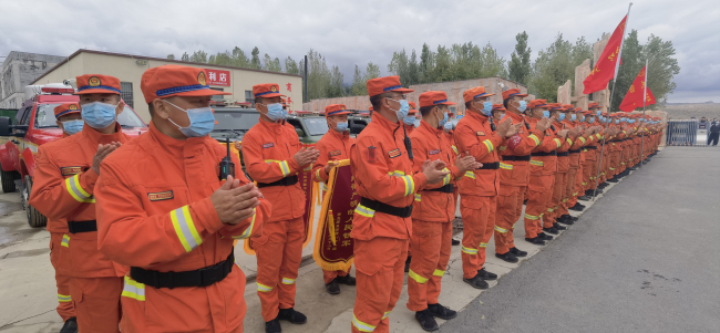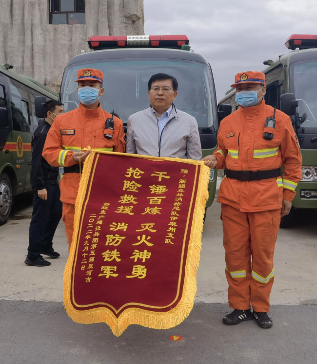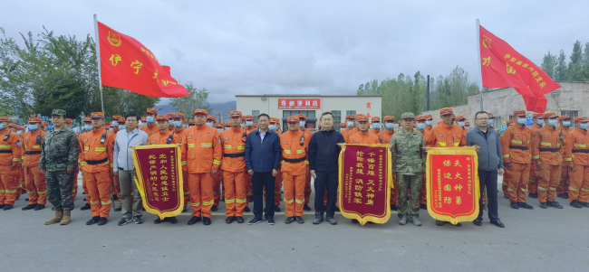 巴音克西同志亲自为坚守一线的指战员们送上锦旗,并送上节日的祝福和慰问。他对新疆森林消防指战员在保障全州生态和经济社会安全平稳发展方面取得的成绩予以充分的肯定,对总队圆满完成各项重大救援任务表示高度赞誉;同时指出新疆森林消防是一支有着光荣传统和辉煌战绩的队伍,广大指战员坚持践行习近平总书记重要训词精神,坚持“人民至上、生命至上”,在灾害面前救民于水火、助民于危难,为全疆的生态文明建设和经济社会发展作出突出贡献,全体指战员不负使命、勇于担当,出色完成了党和人民交给的光荣任务,党和人民不会忘记!