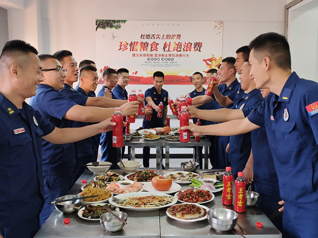 会餐中,驻防分队队主官代表中队党支部向全体队员送上节日的祝福,勉励大家在往后日子里以更加饱满的热情投入到各项工作任务中去,再接再厉、再创新高。随着一声声祝福、一阵阵欢呼声响起,美味也随着空气里扑面而来,中秋的节日氛围渐渐走向高潮。