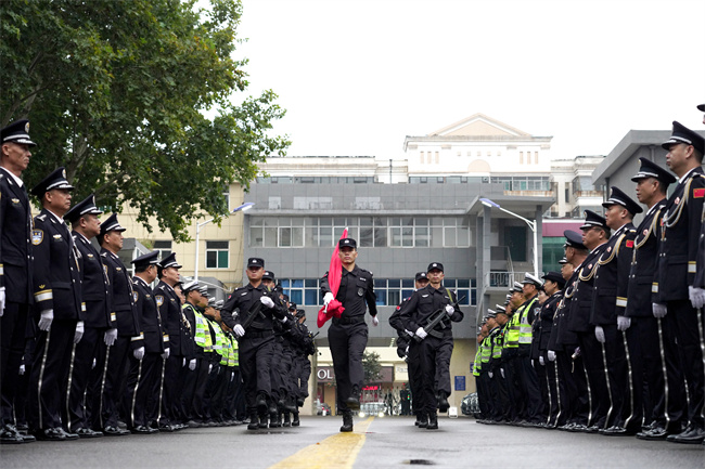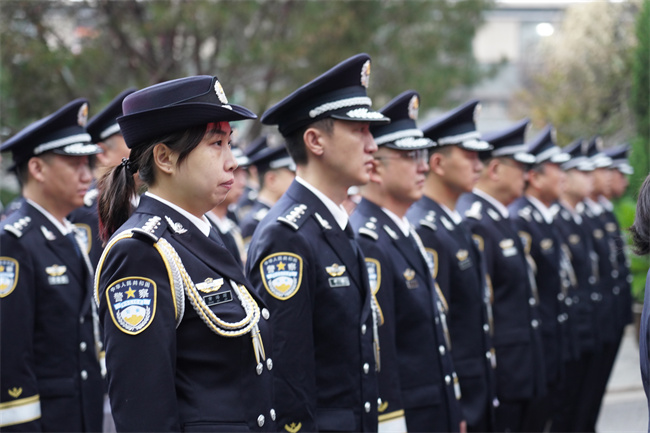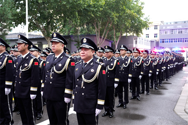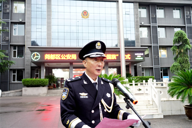 本网讯:(田哲斌)为庆祝新中国成立73周年华诞,进一步凝聚警心,鼓舞斗志,激励全警忠实履行职责使命,坚决打赢党的二十大安保维稳攻坚战。2022年10月1日上午,尧都区公安局举行“迎国庆、升国旗”暨党的二十大安保维稳誓师会。副区长、区公安局党委书记、局长崔军出席活动并作动员讲话,仪式由党委副书记、政委杨玉波主持,局党委班子成员、各单位民警、辅警代表300余人参加。