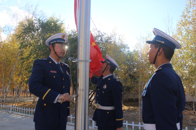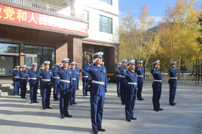 为热烈庆祝新中国成立73周年,进一步深化党史学习教育成效,激发消防救援人员爱国奉献、履职尽责的荣誉感、责任感和使命感,增强热爱祖国、忠诚于党、献身消防事业的坚定信心和决心,10月1日上午,新疆阿勒泰地区森林消防支队大桥林场驻防分队隆重举行升旗仪式。