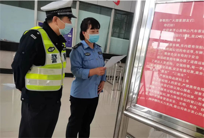 本网讯:(杨天虎)为有效预防客运车道路交通事故发生,保障广大群众及乘客出行安全,按照市公安局交警支队工作部署要求,10月3日,浮山公安交警大队宣传科、指挥中心民警走进浮山客运站、临运浮山分公司开展客运班车严格遵守“三不进站、六不出站”制度宣传活动,督促客运站及公司负责人认真落实好安全管理主体责任,严把“三不进站、六不出站”关,并重点督促车辆驾驶人及乘客发车前一定要系好安全带。