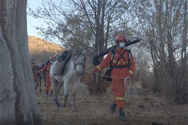 当地草场资源丰富,附近居住牧民较多,居住地也比较分散,时常进山放牧,车辆难以抵达,驻防分队专门组建了“马背巡护队”,并结合当地牧民习俗、文化等特点,利用队伍内部少数民族同志的语言优势,使用维语、哈语、汉语多种语言的教育宣传方式,直观明了对当地群众宣传森林防火重要性。