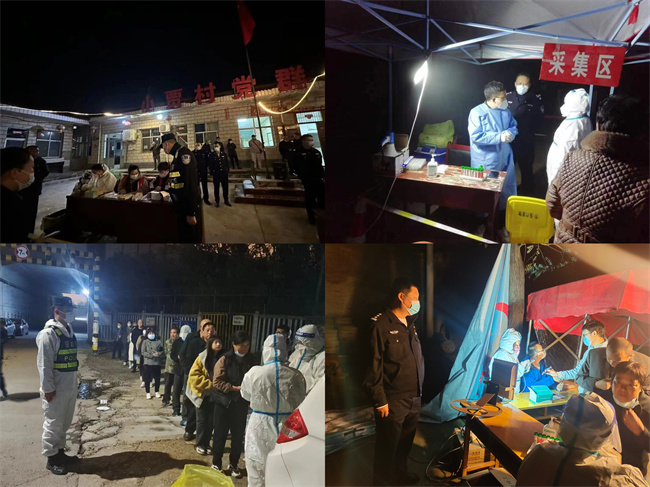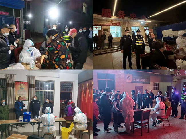 核酸检测期间,局党委班子成员率队,包联科室和基层派出所民警、辅警明确工作职责和责任片区,采取定点值守和动态巡防等方式封控区域、交通管制、疏导人流,宣讲疫情防控政策,提醒群众做好个人防护,确保了全员核酸检测顺利完成及社会治安秩序安定有序。