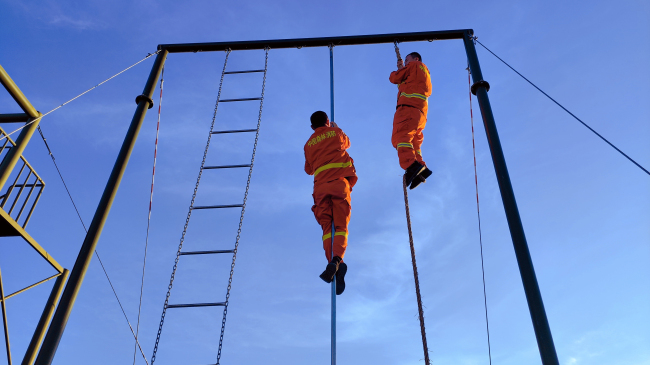 节日到期要迅速进入工作状态,各种技能科目竞技便是一剂良药。大队通过组织水泵架设撤收、爬绳爬杆等科目擂台竞技,不仅提升了人员练兵备战的积极性,更促使全体队员以闪电般的速度完成思想上战备转换。