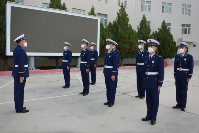 为进一步规范指战员着装,确保队容风纪严整,树立指战员良好形象,10月10日,中队以季节换装为契机,依据《内务条令》和国家综合性消防救援队伍制式服装穿着和标志服饰缀钉规范要求,严密组织队容风纪检查。旨在抓好指战员日常养成、树立良好形象。期间,采取统一组织,逐人逐项对照检查的方式,对检查内容、标准、要求进行了统一和规范,重点对着装、标志服饰、头发、制式鞋袜和个人卫生等内容进行了全面细致的检查。全体指战员队容严整、姿态端正、士气高昂,展现了良好的精神面貌。通过检查,进一步统一了思想,正规了秩序,提升了全体指战员的良好精神风貌。