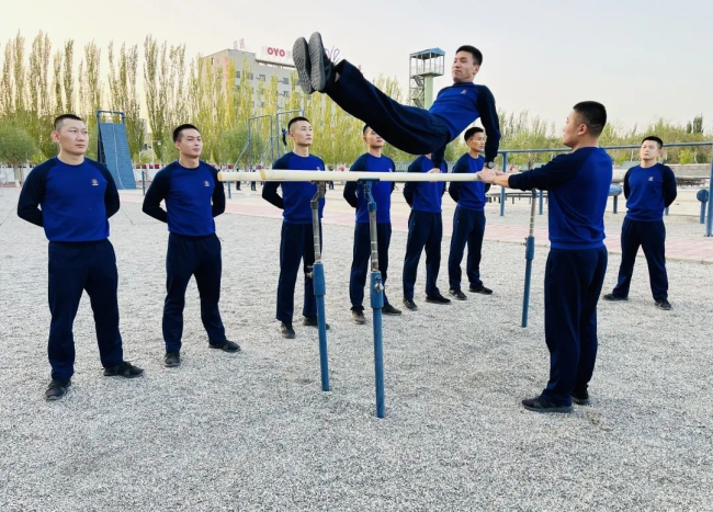 为有效抓好体能储备,夯实中队人员体能基础,备战考核。连日来,中队持续抓好体能训练打牢体能基础。结合考核中暴露出的短板,认真制定训练计划,坚持科学组训、循序渐进的方式方法,重点对单双杠、5000米跑,爬杆爬升等内容进行强化训练。训练前,值班员始终把安全放在首位,组织大家充分活动身体,避免出现训练伤。训练中,参训人员热情高涨,严格要求自我。参训人员努力克服自身不足,不断突破自己的极限。同时,为了激发指战员训练热情,中队积极开展“小评比、小竞赛”等活动,营造“比、学、赶、帮、超”的浓厚训练氛围,确保训练取得实效,弥补了全体人员的身体素质弱项,也激发了大家训练热情。