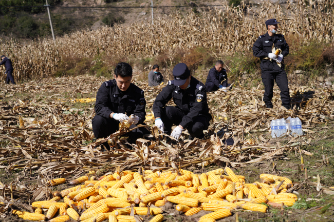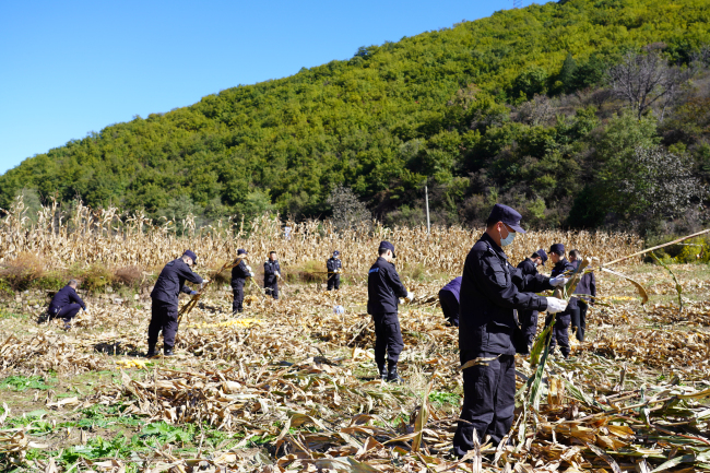 王大娘是尧都区公安局脱贫监测户的其中一户,帮扶工作队关注监测户的情况,加强与村干部沟通联系,了解到王大娘双目失明,家里劳力少,地里种的5亩玉米已经成熟,正为收割的事儿发愁。帮扶工作队了解情况后,落实“精准帮扶”助力防返贫,组织10余名民警、辅警,联合村干部一起帮助王大娘抢收玉米。