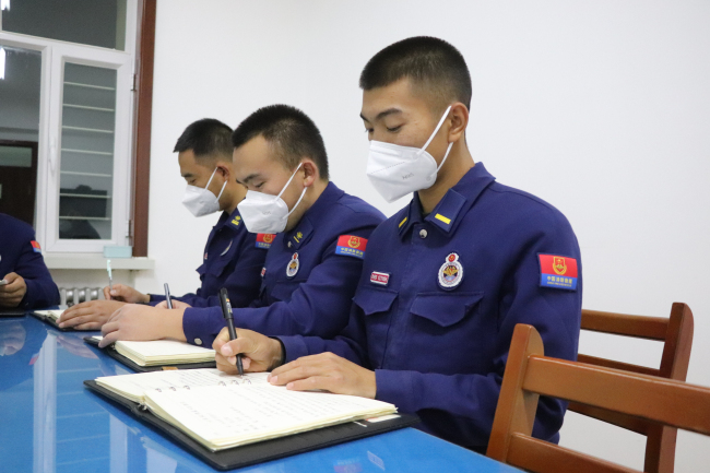 观看结束后,大家纷纷踊跃发言,表达自己的感想,撰写心得体会。预备消防士石增贵说道:“通过观看专题片《领航》,我在时代光影之中真切感受到伟大祖国日新月异的变化,作为一名新时代的森林消防员,要以敢打必胜的信心和勇气担负起新时代赋予我们的光荣使命,在不断拼搏中锤炼过硬本领,用忠诚和担当书写青春华章。”