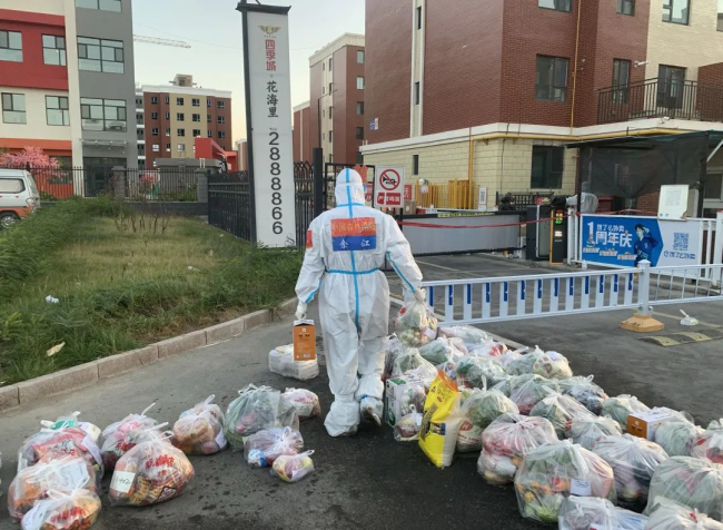 除了每日的消杀工作,还需要每日为居民配送生活物资,由于小区老旧没有电梯,他就靠双腿跑双手拎,一趟又一趟从一楼爬到六楼。当被问及每日重复着同样的工作会厌倦吗?他说:“做好疫情防控工作是大事也是我的职责,作为一名干部,作为一名中国共产党员,我必须要身先士卒,做好一个榜样,能在疫情关键阶段出一份力是我的荣幸。”