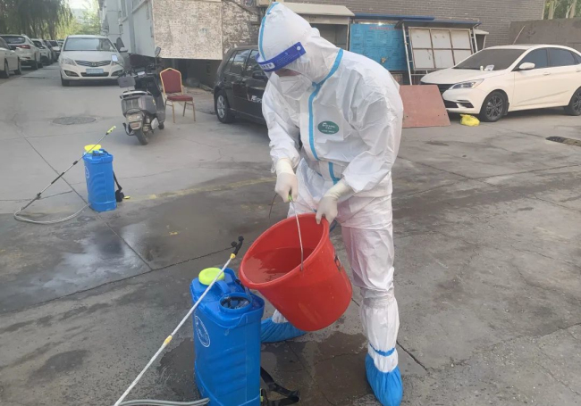 自任务出动以来,他始终冲锋在抗疫一线,把风险最大的小区留给了自己。他每天都要与消毒水打交道,每天要背着重达40斤的消毒药水,对小区十余个单元进行消杀,但他始终秉持着“认真仔细,不遗一处”的态度做好小区的消杀工作,楼上楼下、室内室外都留下了他消毒的“印记”,肩膀被勒红,汗水浸透全身,他也没有休息过一天。