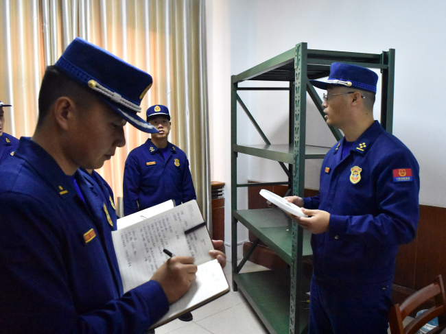 加强管理,集中排查,堵塞隐患漏洞。针对日常训练、人员管理及疫情防控等方面内容,细致梳理可能存在的安全隐患,由大队主官带领中队干部骨干,定期组织对营门、食堂、训练场、锅炉房、车库等地排查治理,现场细化明确整改落实分工和整改时限,每整改一处,将整改图片上传至微信工作群,由全体消防救援人员监督,确保了隐患问题整改质效。干部骨干严格落实查铺查哨制度,夜间查铺的同时对人员体温检测登记情况进行检查,促进了防疫制度的有效落实。