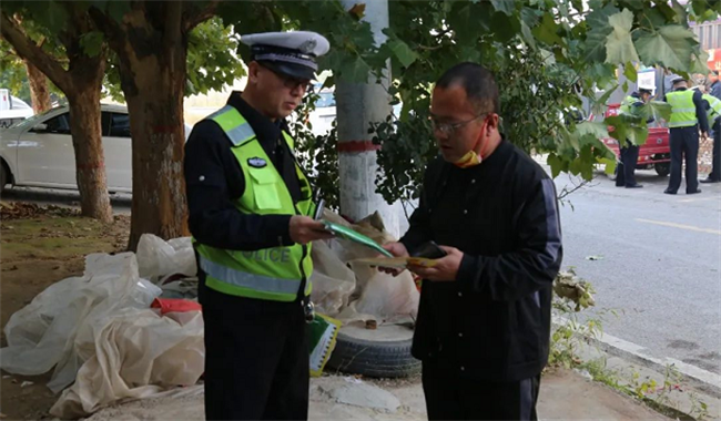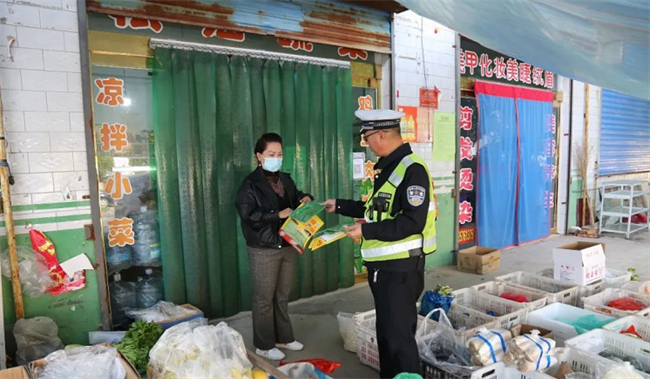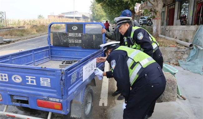 活动中,民警在“大篷车”上悬挂宣传横幅及近期发生的交通事故案例,通过发放“一盔一带”宣传页,讲解交通安全知识,提醒大家骑电动车要戴好头盔,过马路要走斑马线,按照交通信号灯指示通行,不能酒驾醉驾,注意大货车盲区以及大家要遵守的交通法规。并且,针对老中青不同群体,开展针对性交通安全宣传。同时,民警对群众驾驶的农用三轮车喷涂“严禁载人”警示标识,并结合近年来辖区发生的因驾乘摩托车、电动车不戴安全头盔等加剧事故后果以及摩托车超载、三轮车违法载人等交通事故典型案例,向群众详细讲解三轮车违法载人、骑乘摩托车电动车不戴安全头盔、酒驾醉驾、无证驾驶、超速超员、疲劳驾驶、驾乘车辆不系安全带等交通违法行为的严重危害性,提醒大家要牢固树立自我安全保护意识,自觉养成遵法守规、文明出行的良好习惯。