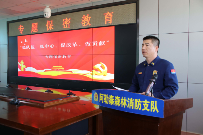 本网讯:(段泽民)“安全重于泰山,保密就是红线”。为增强全体消防救援人员“保密就是保打赢”的思想观念,做到不触失泄密“红线”,保卫党的二十大胜利召开。近日,阿勒泰地区森林消防支队勤务中队结合支队“稳队伍、抓中心、促改革、做贡献”蹲点调研帮建实施方案多措并举拧紧底线“安全阀”,编织保密“安全网”。